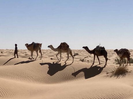 2. den: společný ranní let Zurich - Djerba, přejezd do Douz, které je považován za tuniskou bránu do pouště. Na tržišti na náměstí v Douz si v pravé arabské atmosféře dokoupíme nezbytnosti pro naši výpravu pouští, eventuelně suvenýry, protože po návratu z tiché pouště už se nám do mumraje obchodů nebude chtít. Poté nás džípy převezou na hranici Sahary, odkud začne pěší putování s karavanou velbloudů a v doprovodu beduínů do srdce pouště.